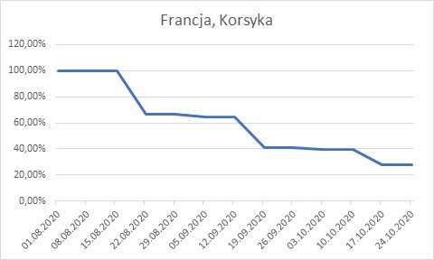 Korsyka – sezon trwa do połowy września, w październiku w marinach pojawia się niewiele łodzi. Jesienią dla Polaków wciąż jest ciepło, w dzień powyżej 20 stopni, różnica temperatur między nocą a dniem jest spora. Wiatr idealny do żeglowania 4-5 B, z zachodu albo północnego zachodu, bezpieczniej płynąć po wschodniej stronie wyspy. Może być kłopot z dostępnością infrastruktury, w tym restauracji i barów, zamykanych po sezonie.